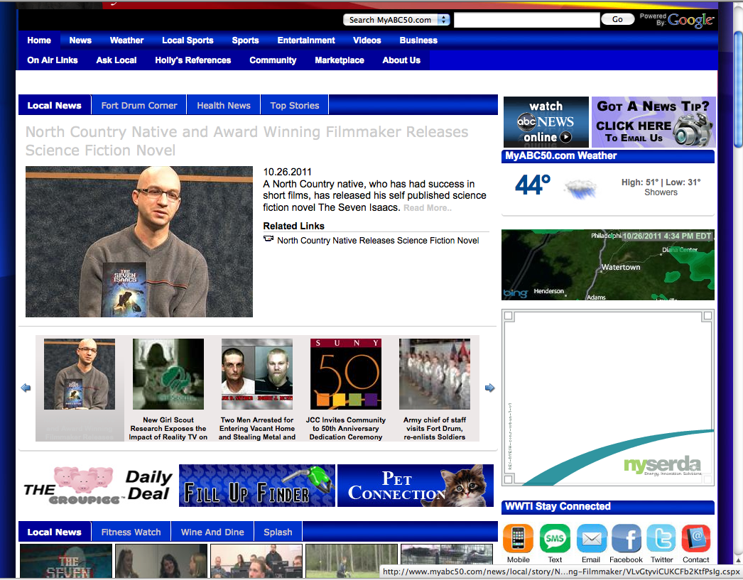 “A North Country native, who has had success in short films, has released his self published science fiction novel The Seven Isaacs.