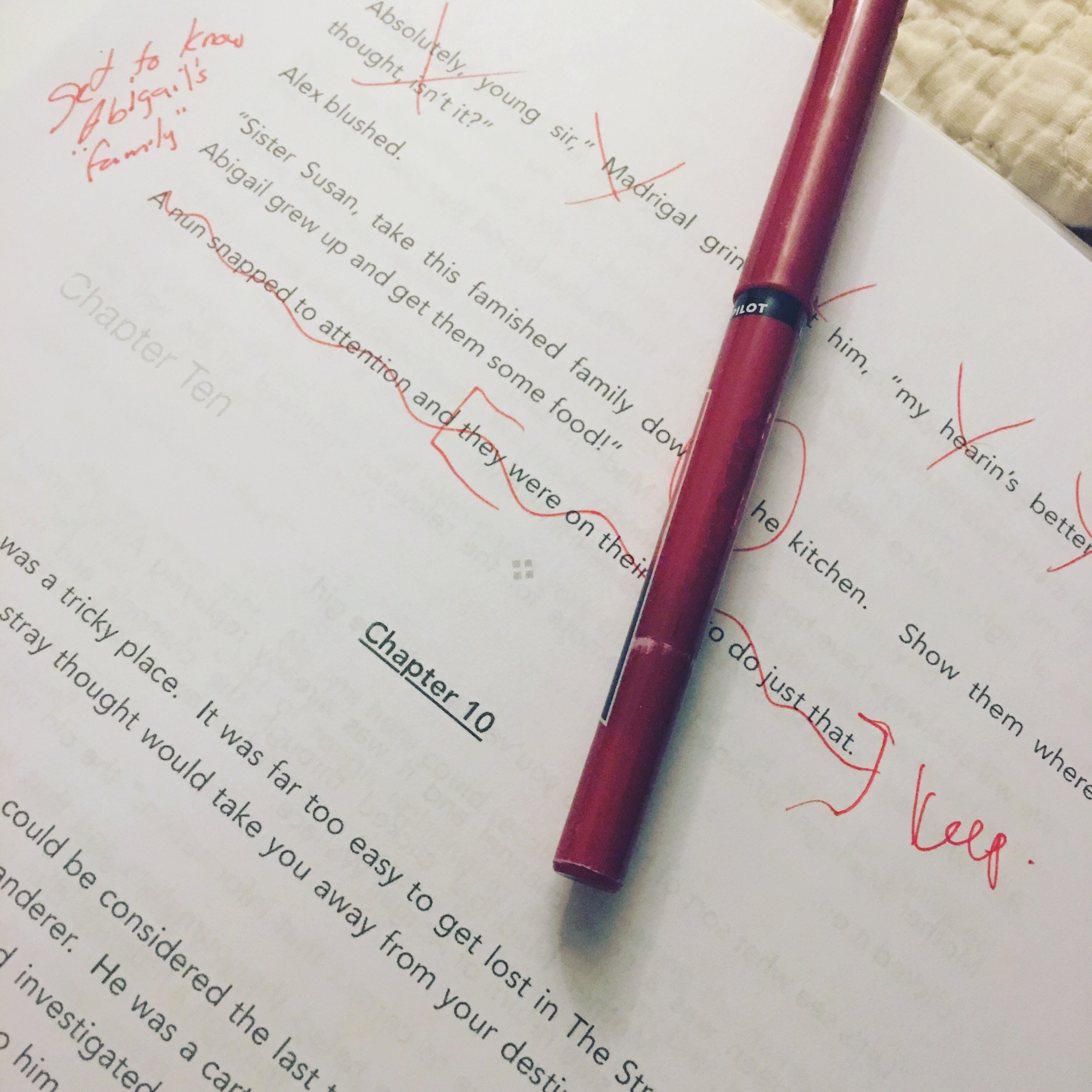 And yes, I print out each and every one of my works and make my corrections with a red pen. I’ve done it since my first screenplay, I’m certainly not going to stop now.