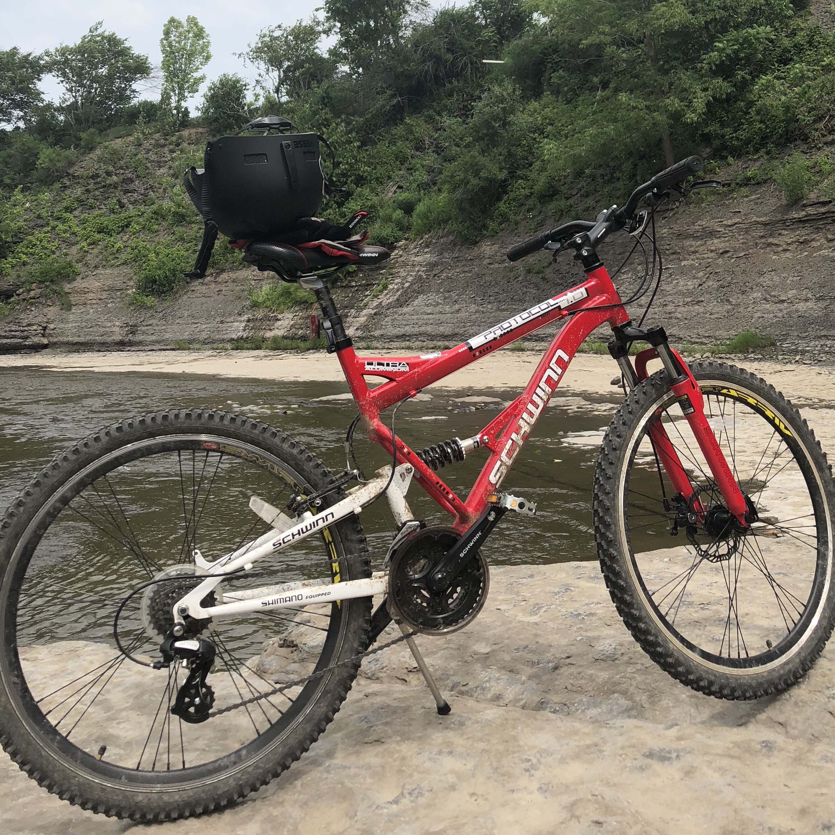 “I know a trail nearby,” I say, “that I have been dying to try out. I walked it last year. It’s perfect for mountain biking.
