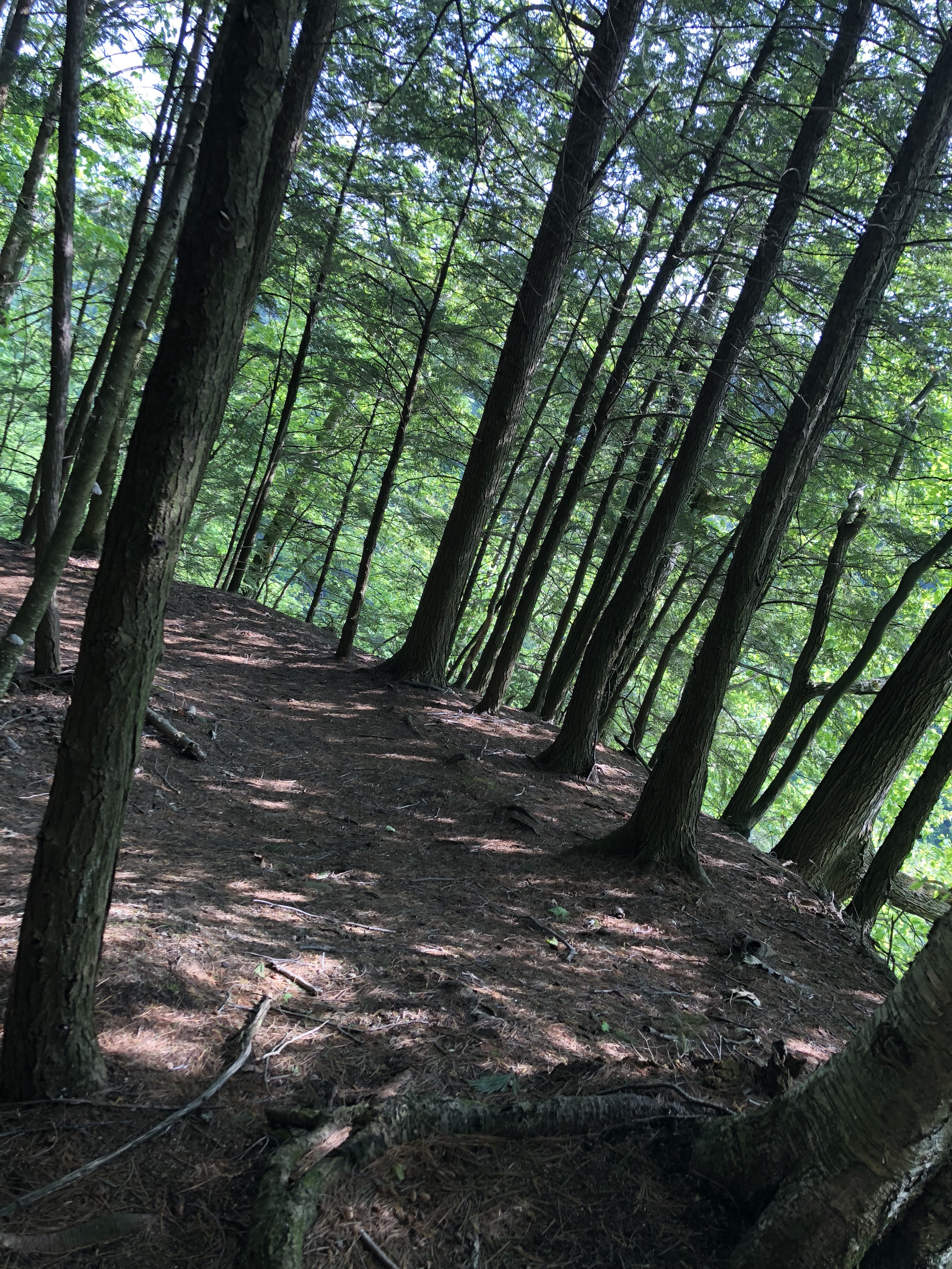 I chug along at a pretty good clip. I could feel the muscles in my thigh starting to burn. I could feel the sweat gathering all over my head, under my helmet. I tear through that forest like she’s my bitch. Until I came to a hill that I definitely had to walk up.