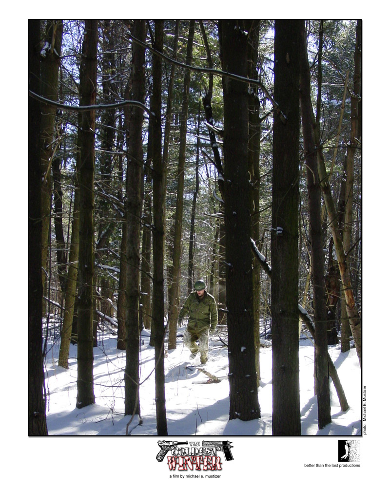 I began scripting a short film that we could shoot in our backyards in Northern New York, deep within what the call “The Snow Belt”. With snow as a backdrop that set the story in the Ardennes. The story was a road-runner/coyote-esque chase as these two soldiers chase each other than have to come together for a common cause or die from the cold.